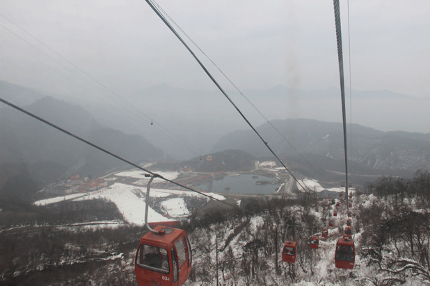 快到山顶索道站府看雪岭雪山滑雪场